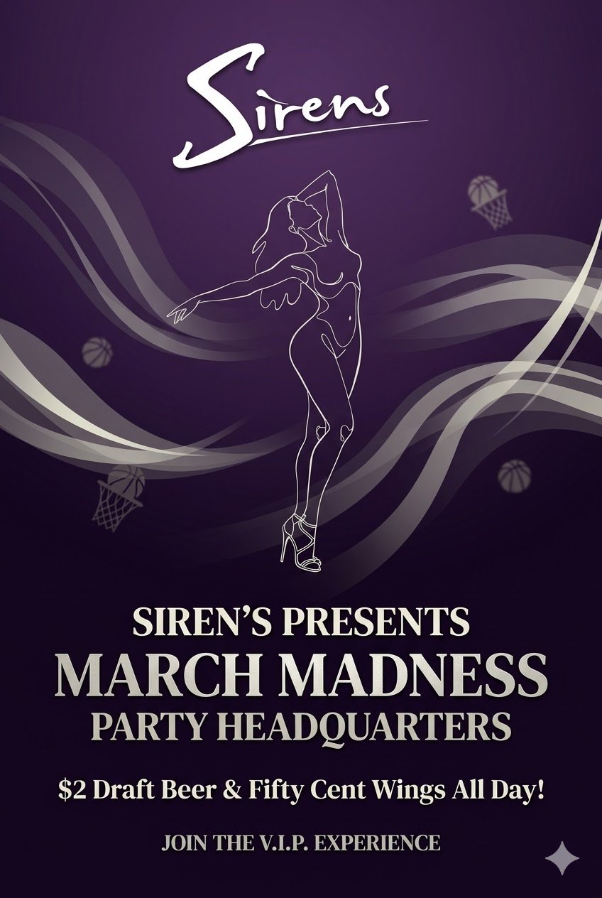 MARCH MADNESS! - Come party at Sirens for March Madness and enjoy $2 Draft Beers and wings for only fifty cents!